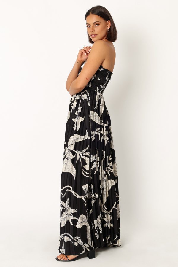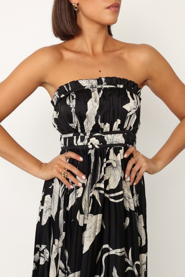Do you want to make a statement this summer? Look no further than the stunning maxi length dress. This strapless style with its straight neckline and shirred back is perfect for any occasion. The invisible back zip with hook and eye clasp makes it easy to slip on and off.