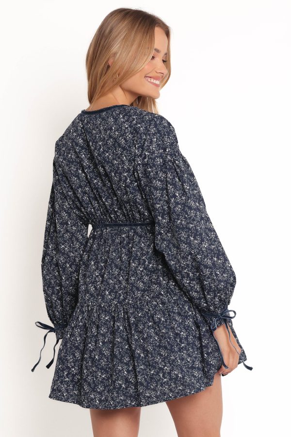 DETAIL This captivating dress features a charming round neckline with a delicate tie closure. adding a touch of sophistication to your ensemble. Its long sleeves. adorned with a non-functional tie detail. offer a hint of elegance. while the front cutout feature brings a modern edge to this classic piece.